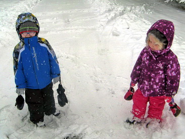 1 & 2. Amelia at Grandma Linda's house. 1. Amelia. 2. Twins check out first real snowfall of 8 inches! 1 & 2. "Wow, we can play in this all winter!"