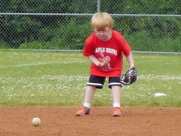 1. Reece up to bat in T-Ball 2. Rounding third, headed home! 1. Reece, second baseman. 2. Fielding. 1. Amelia likes to climb. 2. Gymnastics in her future?