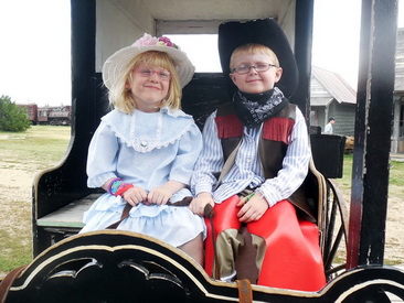 1. "Hey Reece, it's my turn to drive!" 2. "Who is this dude?" 1. "1880s Town is sure fun!" 2. "This is NOT a horse, Amelia!" 1 & 2. Revisiting Evans Plunge in Hot Springs. Ryan & Alan were here in 1981.