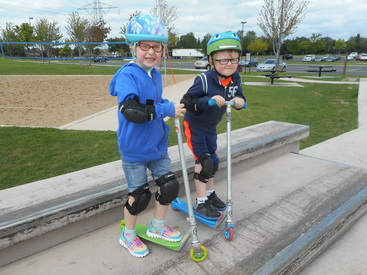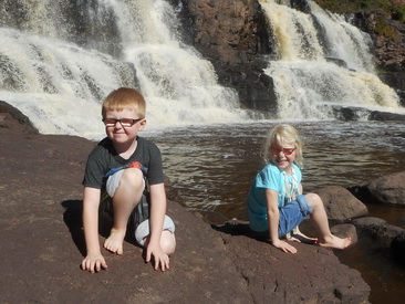 1. Amelia, Reece & Snoopy. 2. Scooters at the park. 1 & 2. First day of school - first grade. 1 & 2. Family outing at Gooseberry Falls, North Shore.