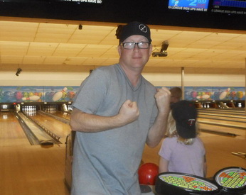 1. Bowling with the family. 2. "I just bowled a 300!" 1. Mom & Reece. 2. "My fingers are too small for the holes!" 1. Reece goes for a spare. 2. Reece at gymnastics.