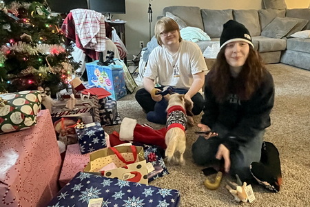 1. Ryan's house in winter. 2. Can you find Olaf? 1 & 2. Christmas at Ryan's house is comfy & cozy! 1. Reece & Amelia open presents. 2. Olaf is such a cute dog!